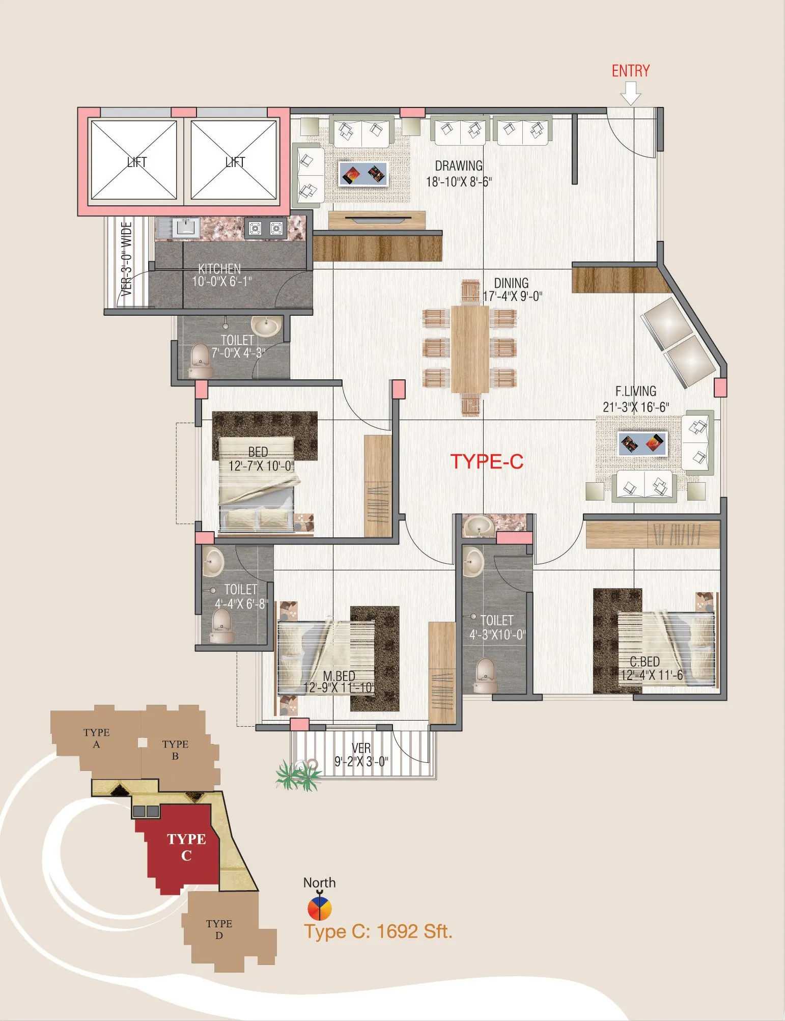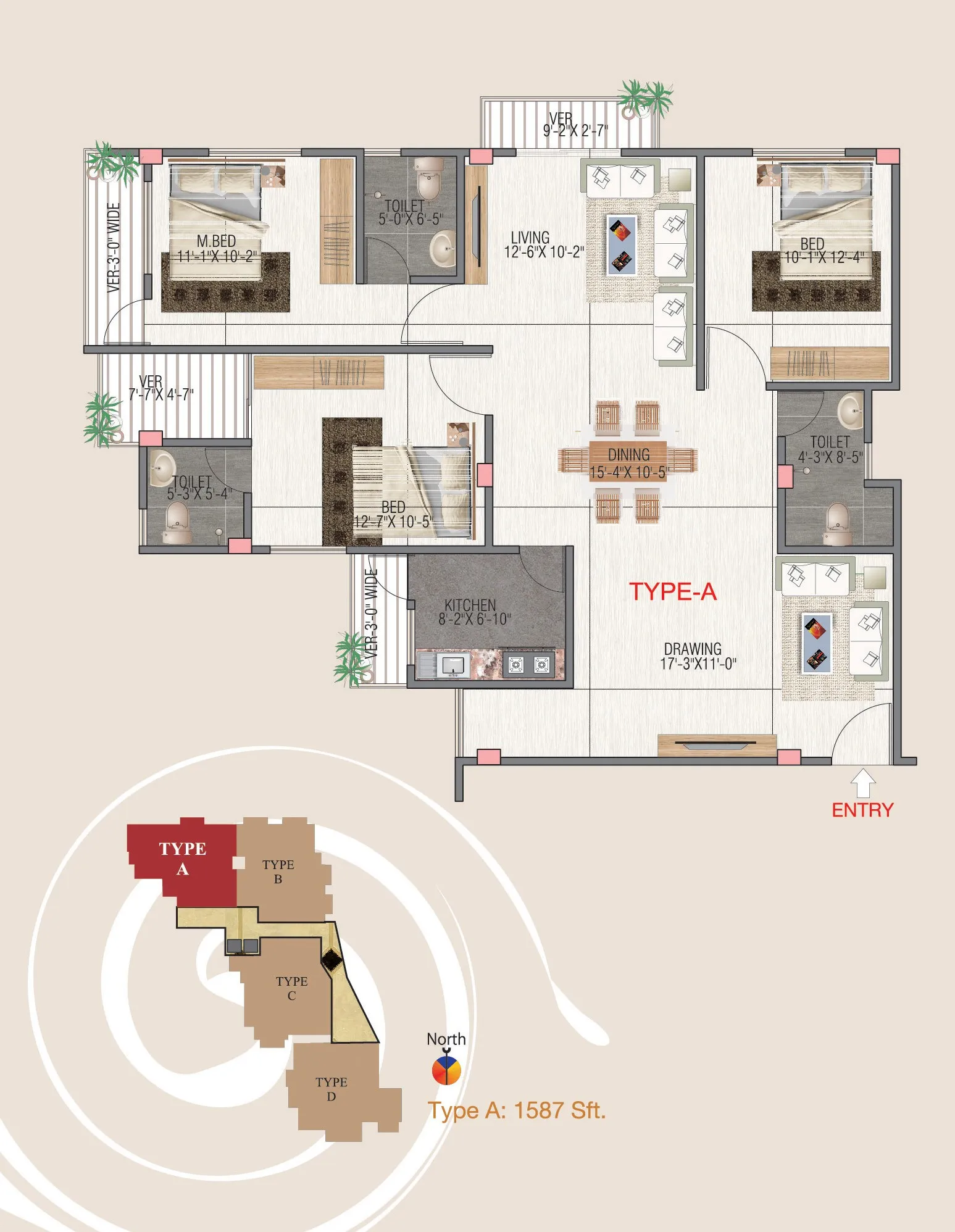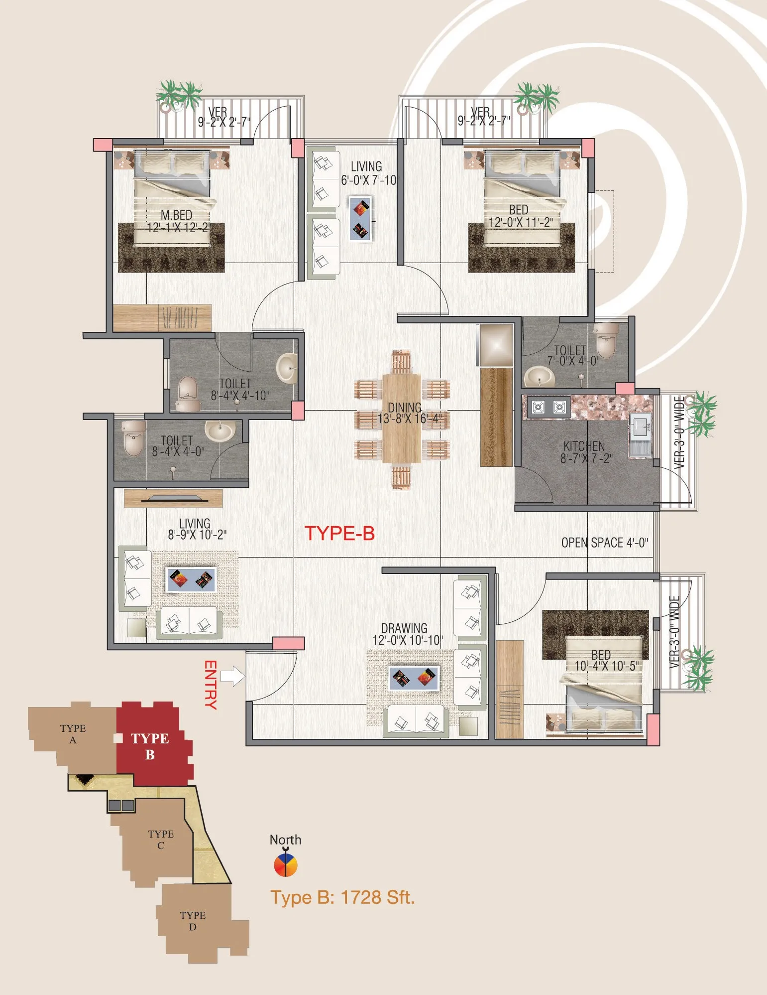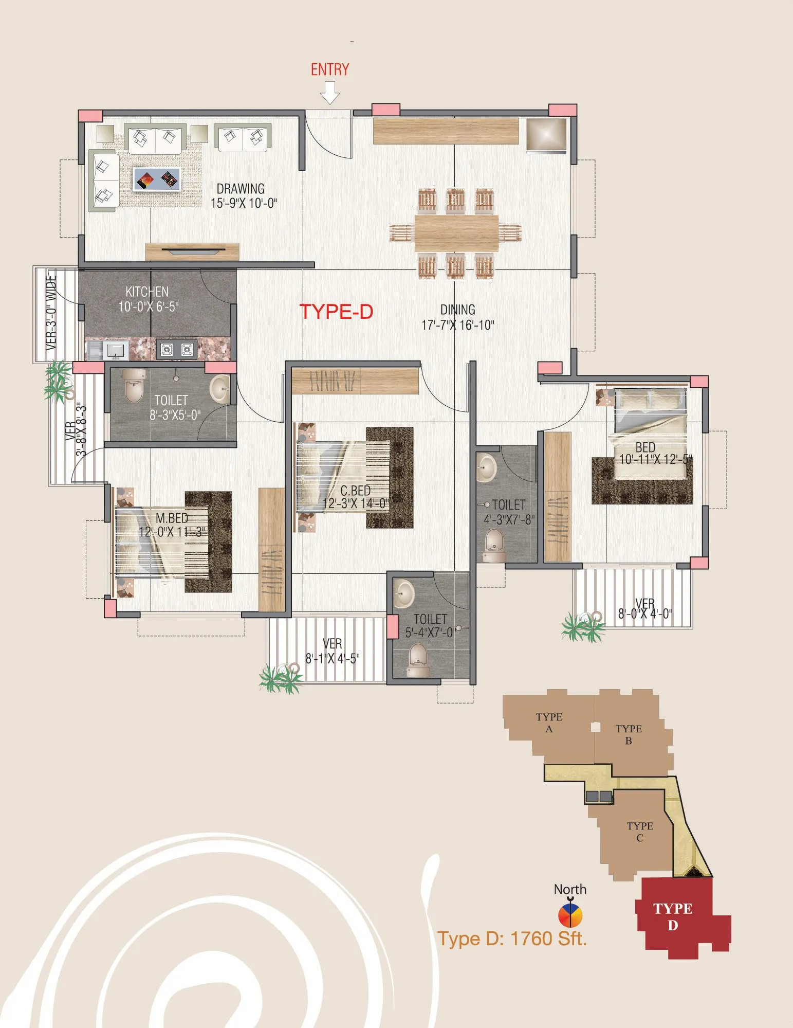 Type | Size | Bedrooom | Bathroom | Verandha |